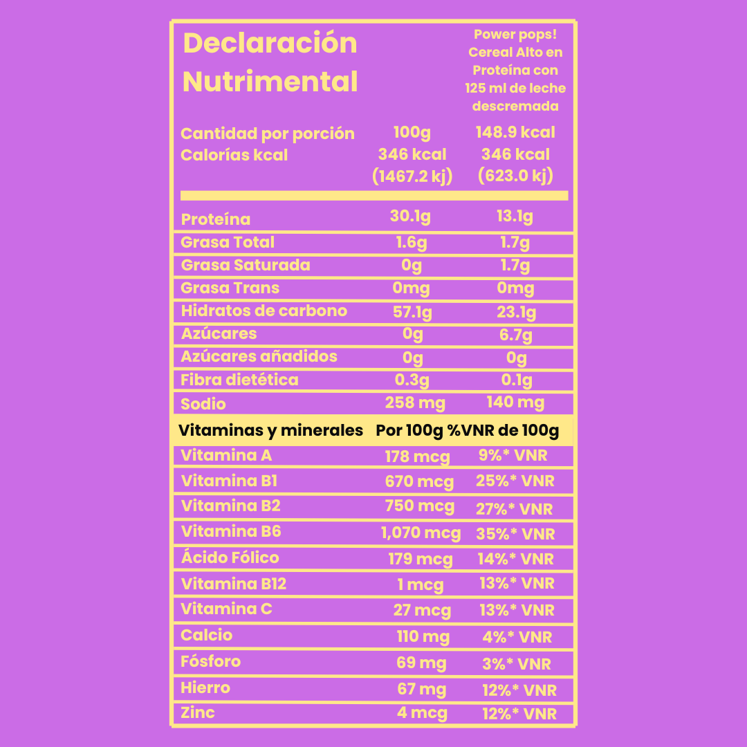 ¿Qué proteína contiene Power pops! y en qué concentración ?